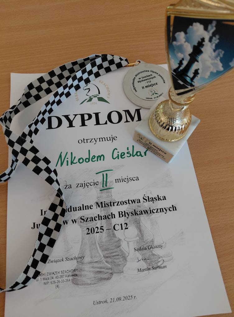 21 września 2025 roku w Ustroniu odbyły się Mistrzostwa Śląska Juniorów w szachach błyskawicznych. Udział w tym turnieju wziął cieszyniak Nikodem Cieślar, który ma juz na koncie wiele sukcesów. Z tych zawodów kolejny sukces trafia do jego kolekcji.